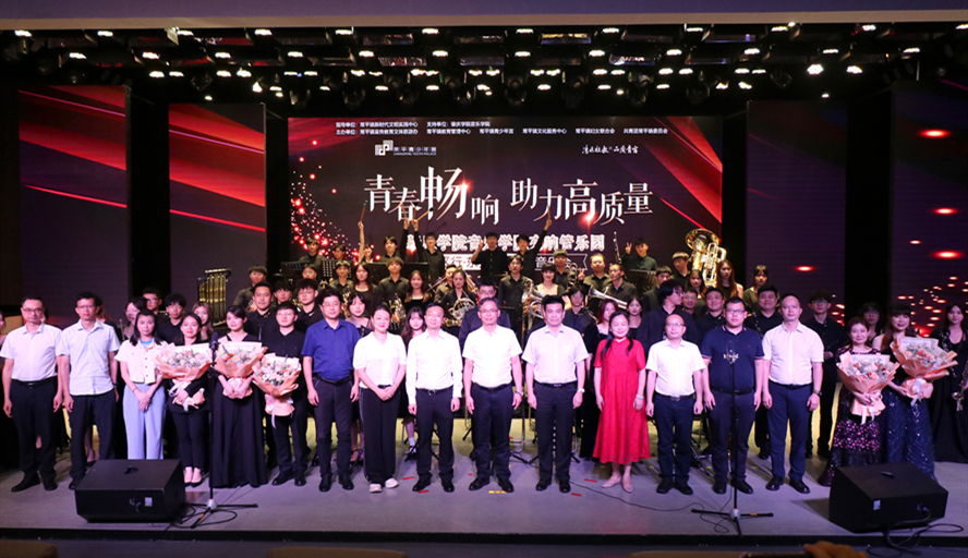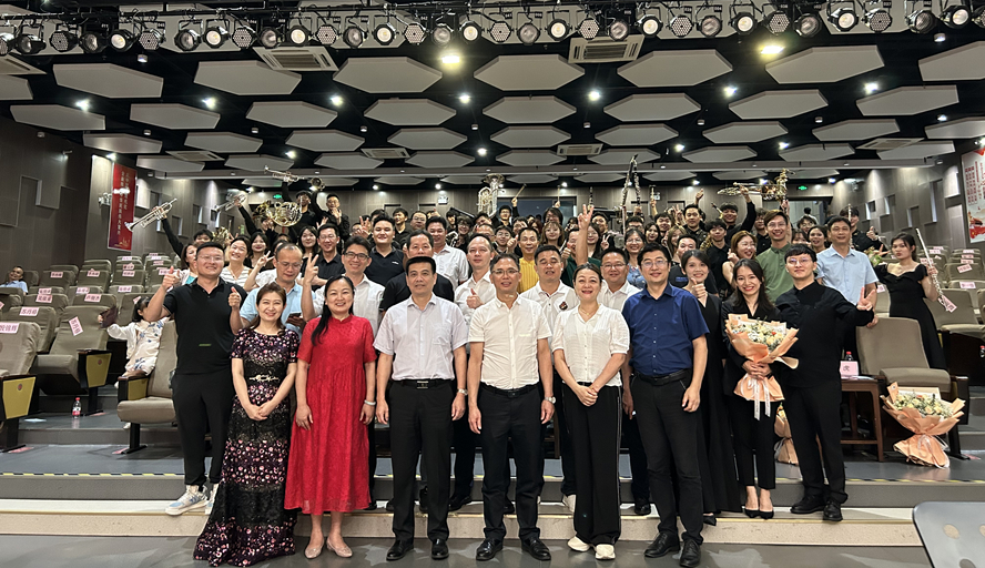 当天晚上,在东莞市常平镇青少年宫星剧场举行青春畅响,助力高质量——必赢242net官网音乐学院交响管乐团“湾区行·东莞站”公益音乐会,音乐学院领导和师生,常平镇宣传教育文体旅游办、教育管理中心、文化服务中心、妇联、团委、青少年宫相关负责人以及多位必赢242net官网校友等400余名观众出席了音乐会。