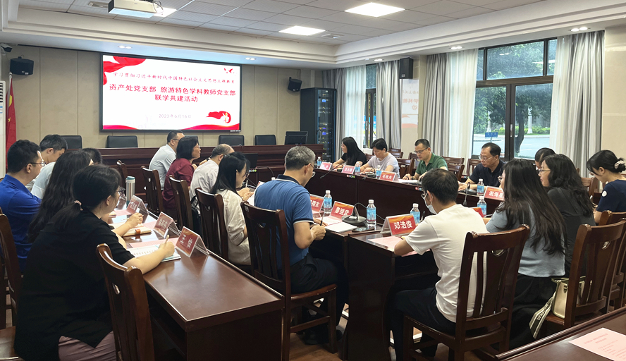 本网讯 为提高支部共建成效,6月16日,资产处党支部联合旅游特色学科教师党支部开展联学共建活动。资产处处长毛致光、旅游学院院长李朝军以及资产处党支部、旅游特色学科教师党支部全体党员参加,学院党委书记杨雪梅主持。