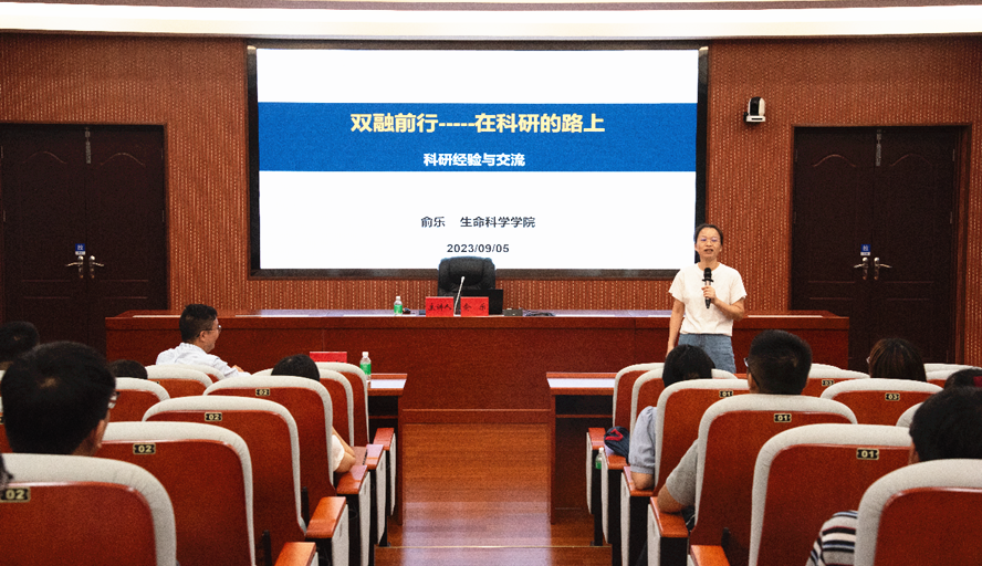 俞乐以“双融前行”为主题,结合自身科研经历,从工作态度、表现和付出三方面分享科研工作经验。她用“沉下心、平下气、多做事、少说话”勉励新入职教职工,希望他们在申报课题时秉着无抱怨、无所惧、无所畏的态度从容对待,并期待新入职教职工以教学促进科研、以科研反哺教学。
