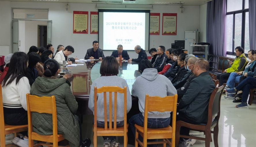 本网讯 2月23日,图书馆(档案馆)召开2024年新学期工作会议暨高质量发展讨论会。馆长班荣鼎在主持会议中强调,图书馆(档案馆)要推动书香校园建设,充分发挥文化育人功能,努力建设成为学校的文化标杆。党总支书记黄镜辉指出,全馆要统一思想、凝心聚力,打造党建育人品牌,秉承传承文明、服务师生的宗旨,助力学校高质量发展。