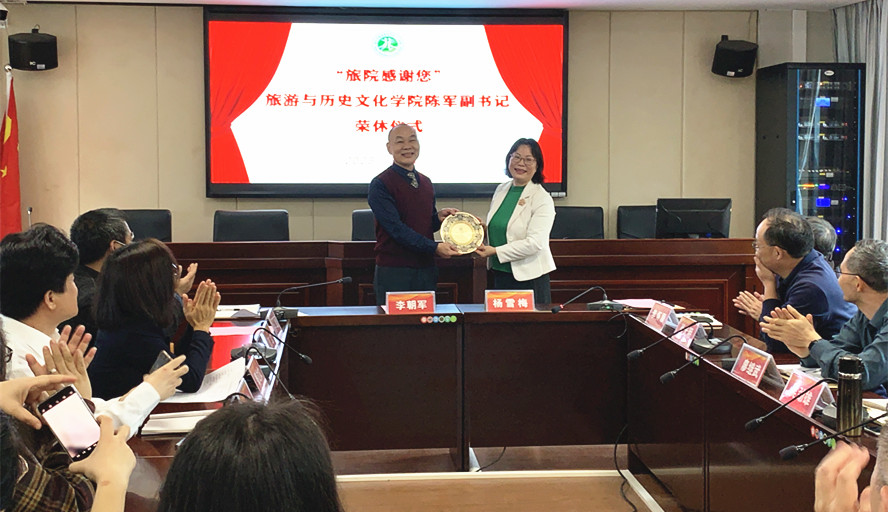 本网讯 3月8日,旅游与历史文化学院全体教师欢聚一堂,为学院党委副书记陈军举办充满温情与敬意的荣休仪式。李朝军院长、学院党委书记杨雪梅参加。